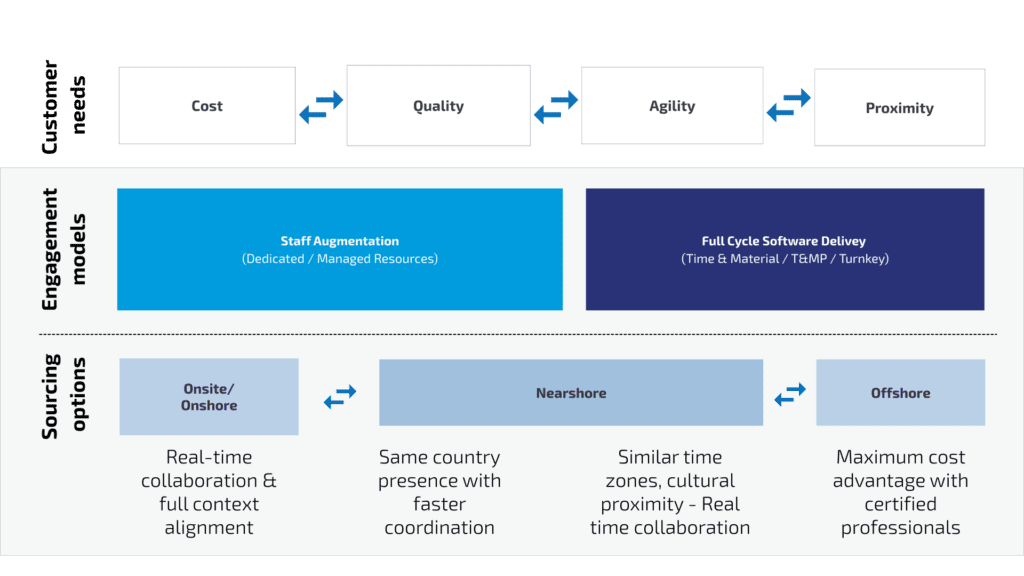 Whether you require team extension, end-to-end project execution, or upskilling, we offer versatile engagement models. Our services, along with the engagement model of your preference, are provided through a unique hybrid delivery method, WiseShore. It enables organisations to build cost-effective, fit-for-purpose teams by blending offshore, nearshore, onshore, and/or onsite resources based on specific project needs.