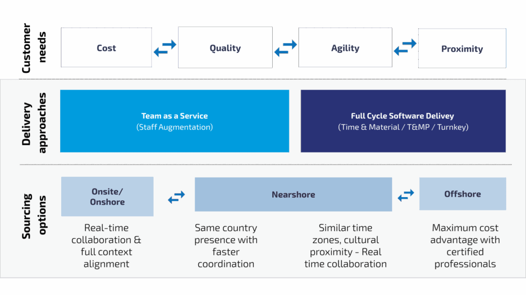 Geographic flexibility: Teams from offshore, nearshore, onshore or onsite